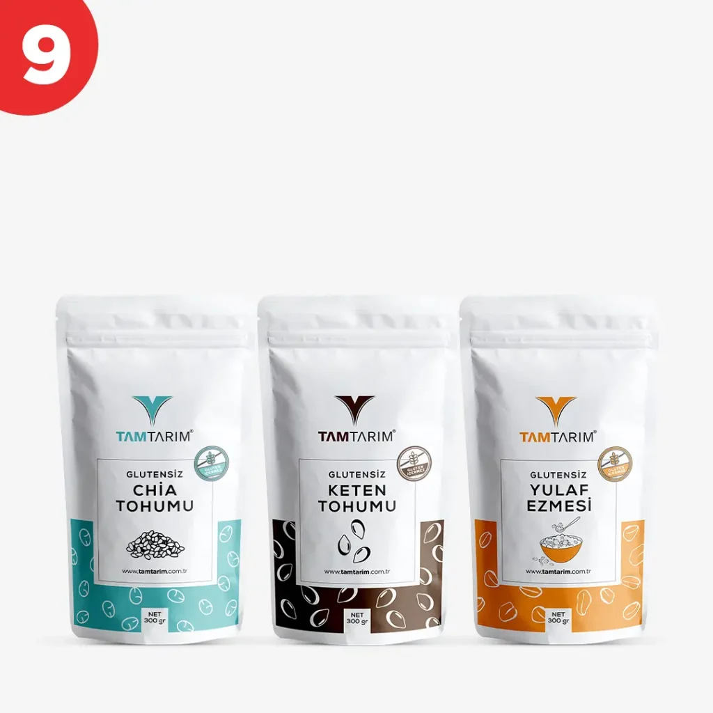 Glutensiz Chia Tohumu 300 g – Glutensiz Keten Tohumu 300 g – Glutensiz Yulaf Ezmesi 300 g