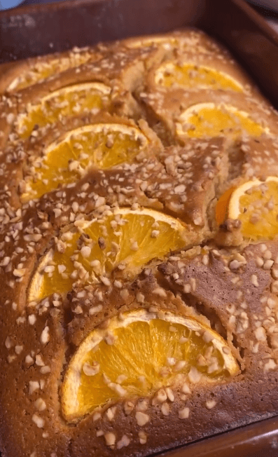 4-Üzerine portakal dilimlerini yerleştirip kırık fındık serpiştirin.